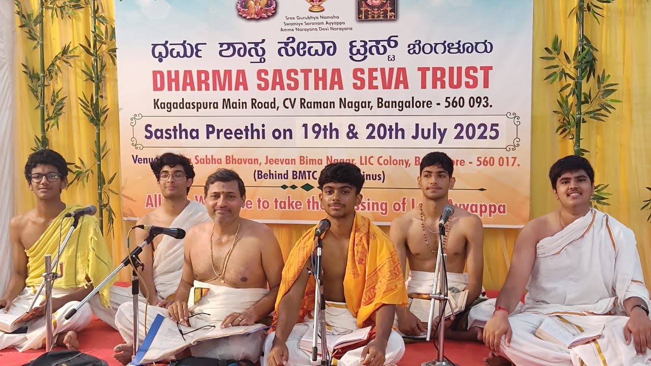 The annual Sasthapreethi was held on July 19, 2025 with great devotion and community participation. Ayyappan Pooja was performed with traditional Vedic rituals and Annadhanam was offered to all devotees and guests, continuing this sacred annual tradition.